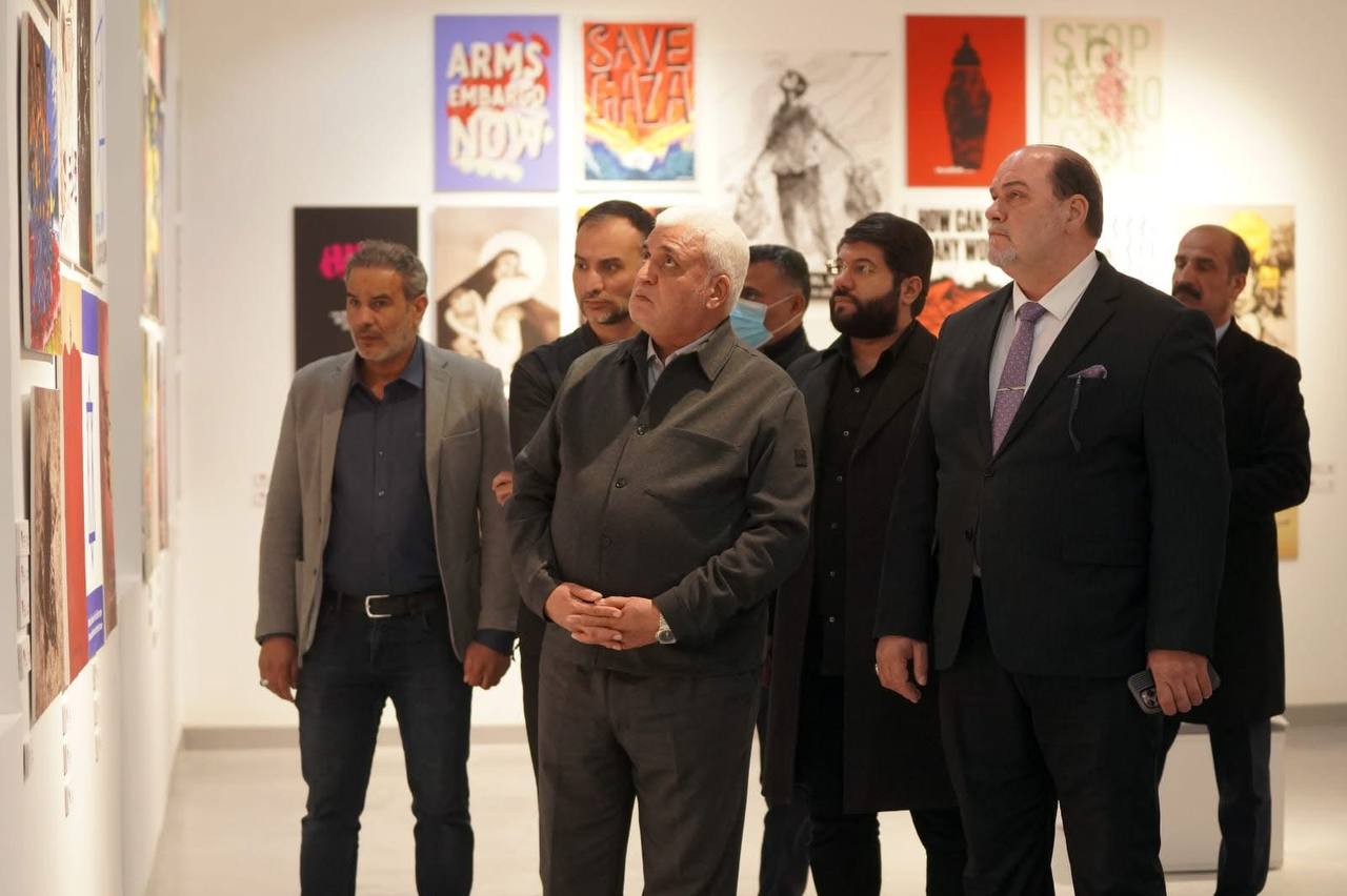 وبحضور الاستاذ فالح الفياض رئيس هيئة الح….sh….د الشعبي المعرض المتخصص بالبوستر السياسي وتضامناً مع غزة وفلسطين بمشاركة اكثر من ٣٠٠ عمل عراقي و فنانين من ١٧ دولة من أنحاء العالم.